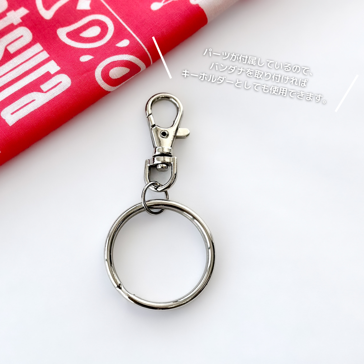 パーツが付属しているので、バンダナを取り付ければキーホルダーとしても使用できます!